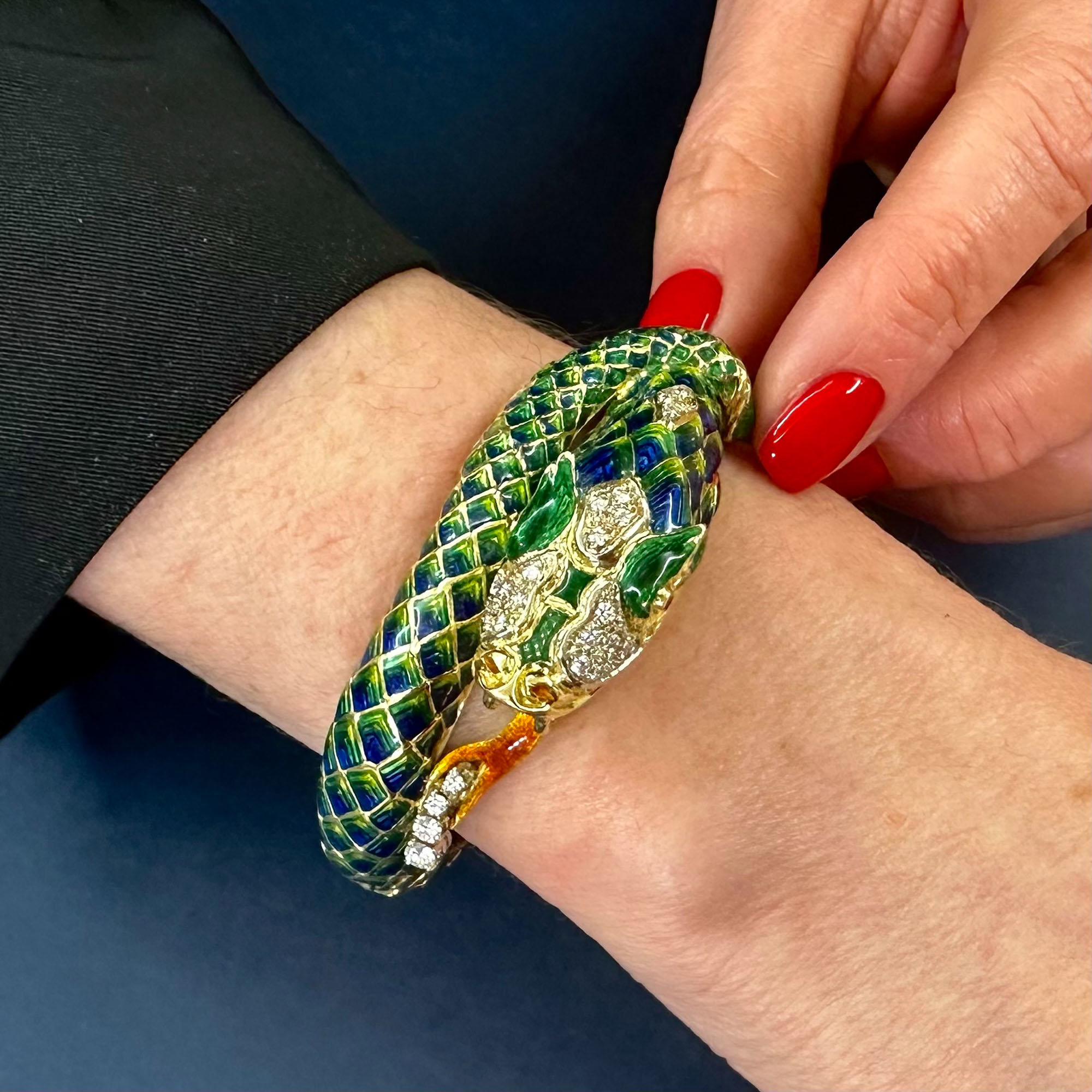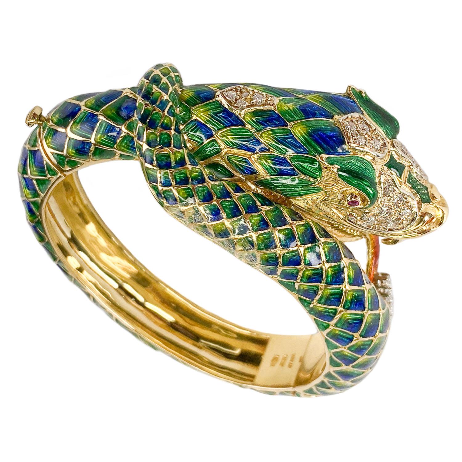 Online sale 18 karat yellow gold bracelet with enamels, diamonds and rubies - Italy 1960s