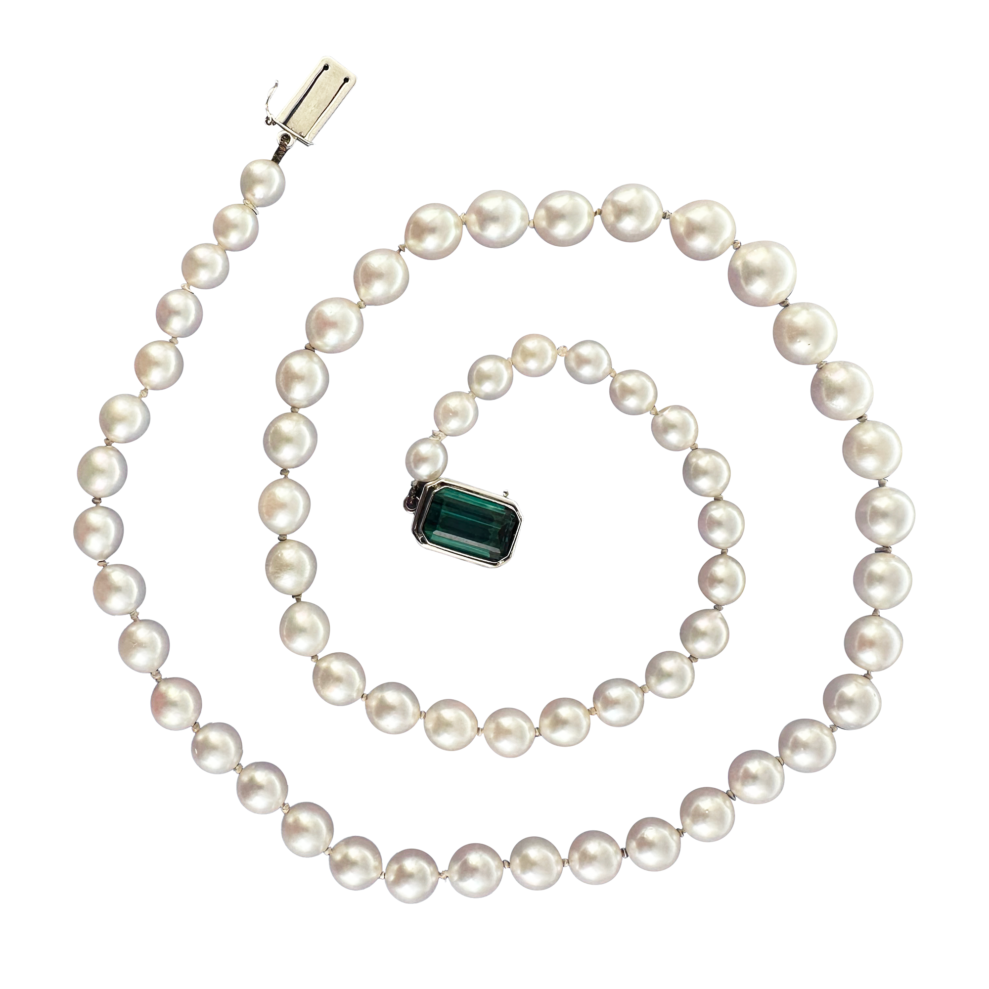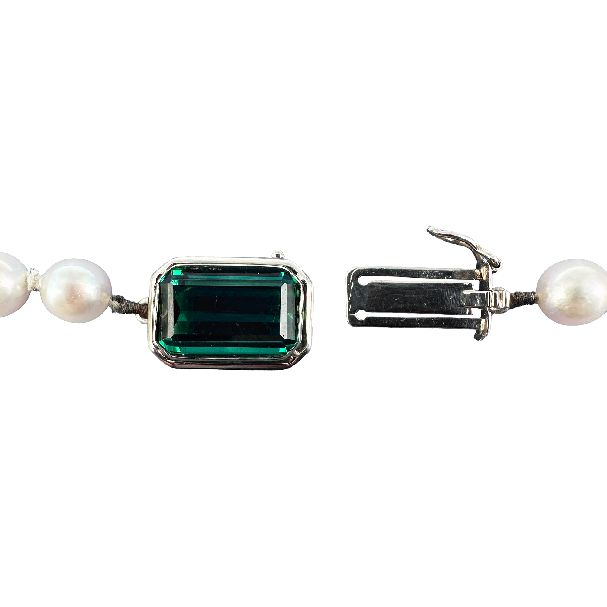Vendita online Collana di perle Akoya con chiusura in oro bianco 18 karati con tormalina - Italia anni '60